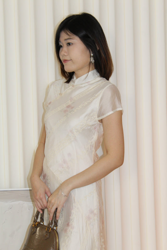 Celeste Embroidered Cheongsam Mini Dress (Cream)