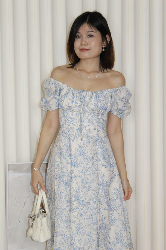 Jollie Floral Corset Flare Midaxi Dress (Cream)