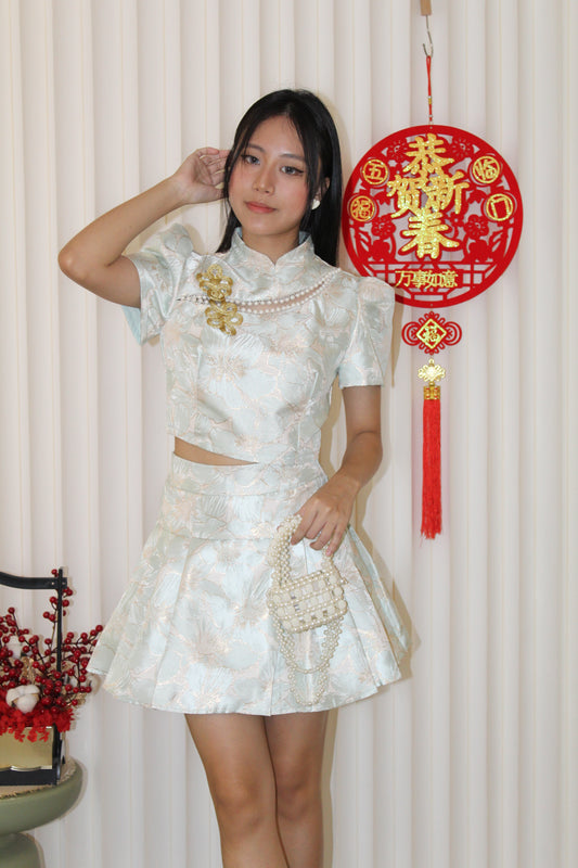 Qi Xuan Jacquard Cheongsam Skirt (Pink)