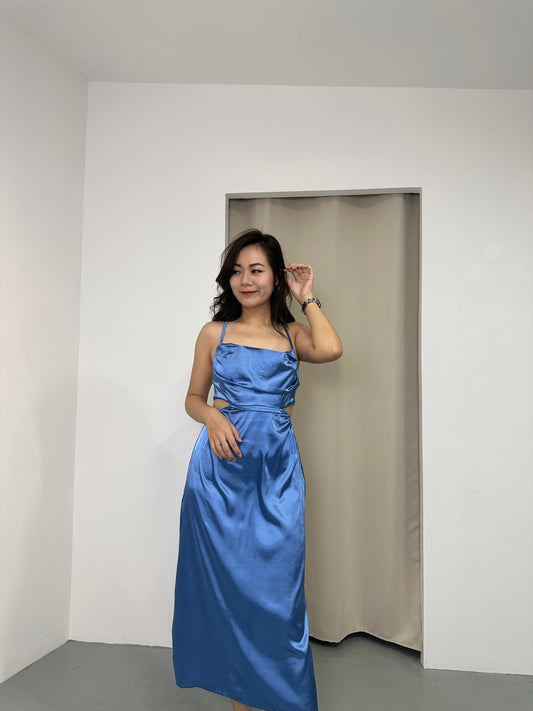 Camille Cut In Satin Dress (Blue)