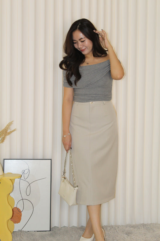 Capucine Straight Midi Skirt (Cream)
