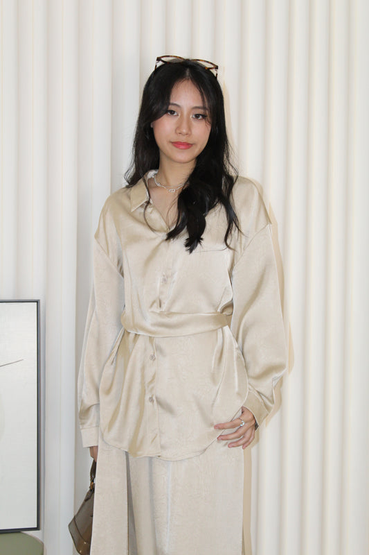Calluna Satin Two Piece Skirt Set (Khaki)