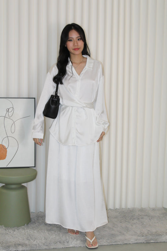 Calluna Satin Two Piece Skirt Set (White)
