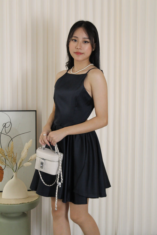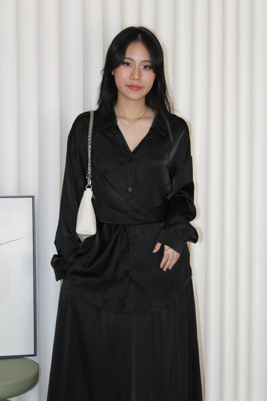 Calluna Satin Two Piece Skirt Set (Black)