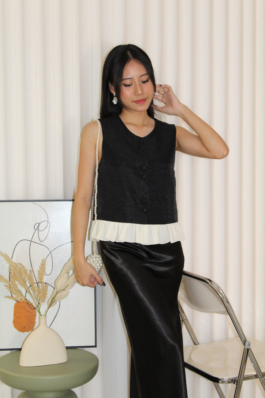 Caroline Vest Ruffle Top (Black)