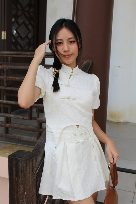 Xuan Cheongsam Two Piece Skirt Set (Cream)