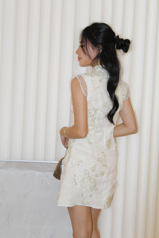 Celeste Embroidered Cheongsam Mini Dress (Cream)