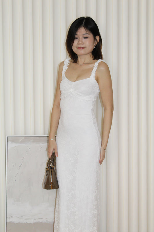 Emilia Cheongsam Flare Maxi Dress (Cream)