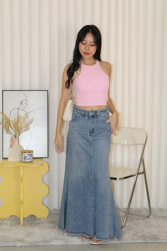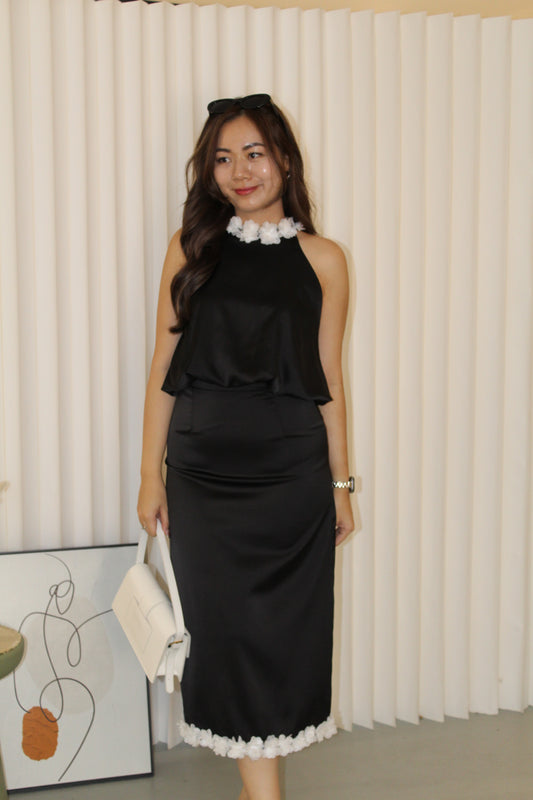 Rebecca Ruched Slit Maxi Skirt (Black)