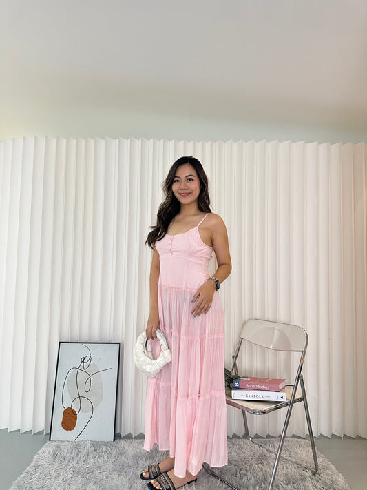 Shermaine Satin Flowy Maxi Dress (Cream)