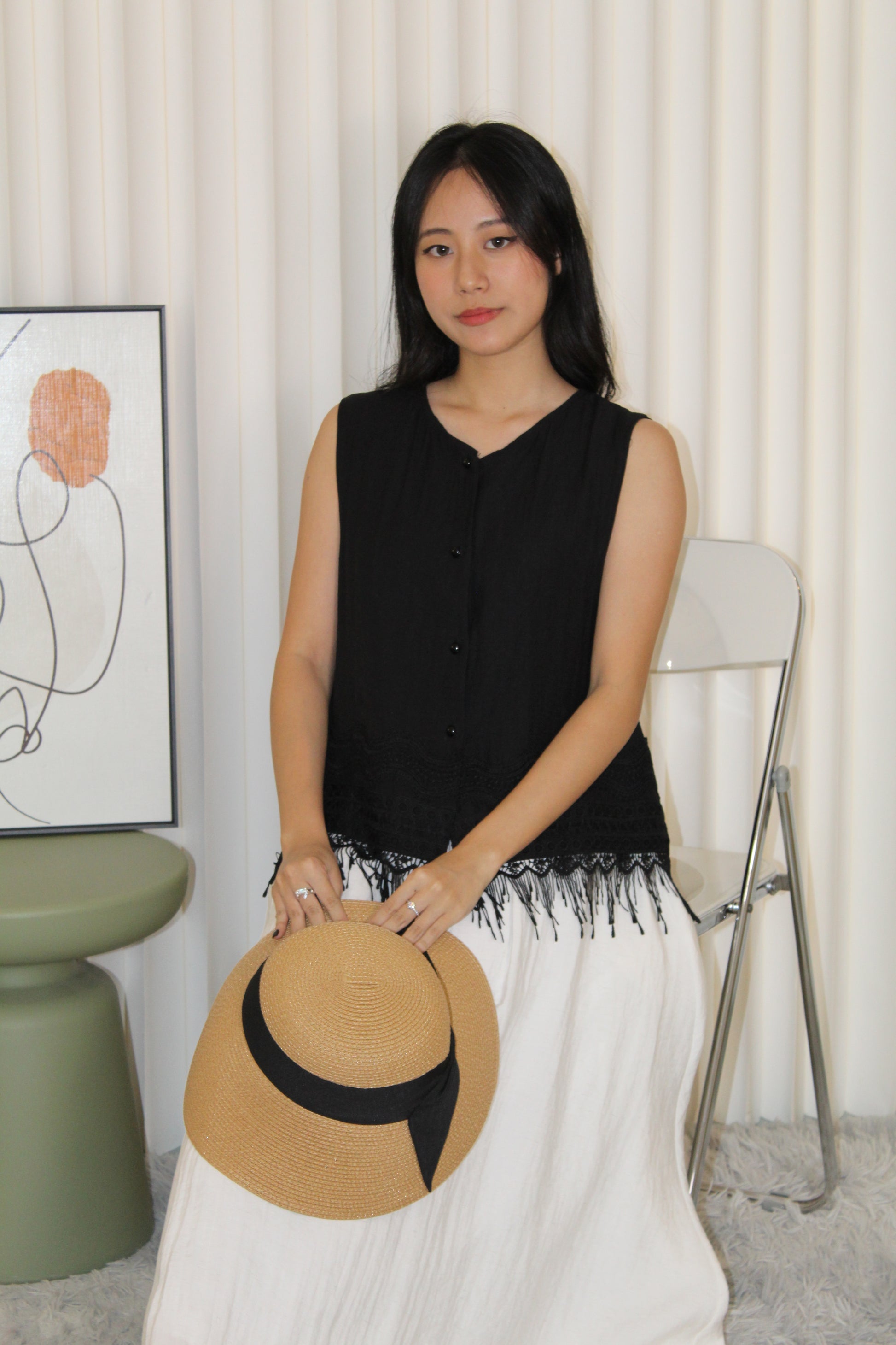 Canny Frayed Lace Vest Top (Cream)