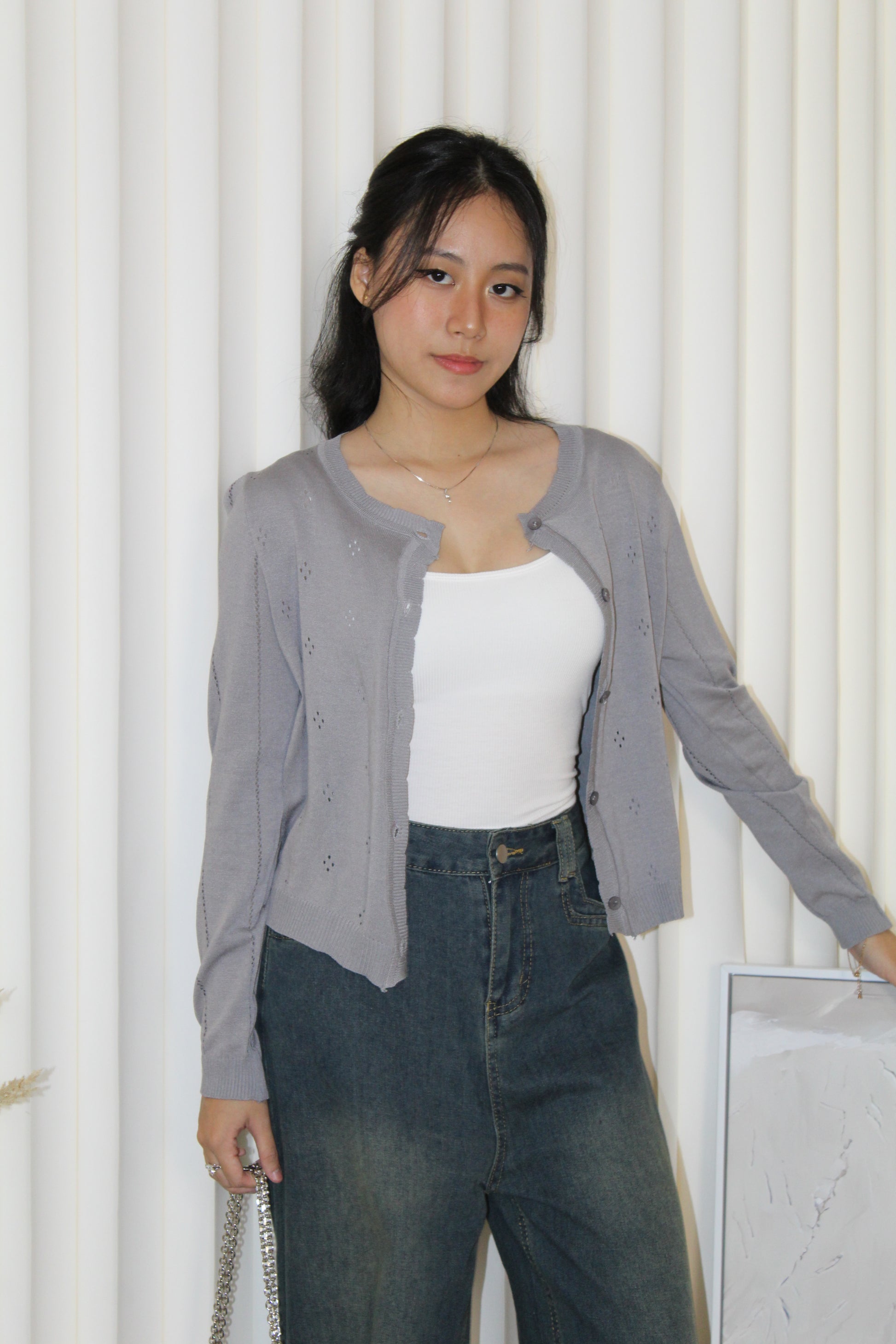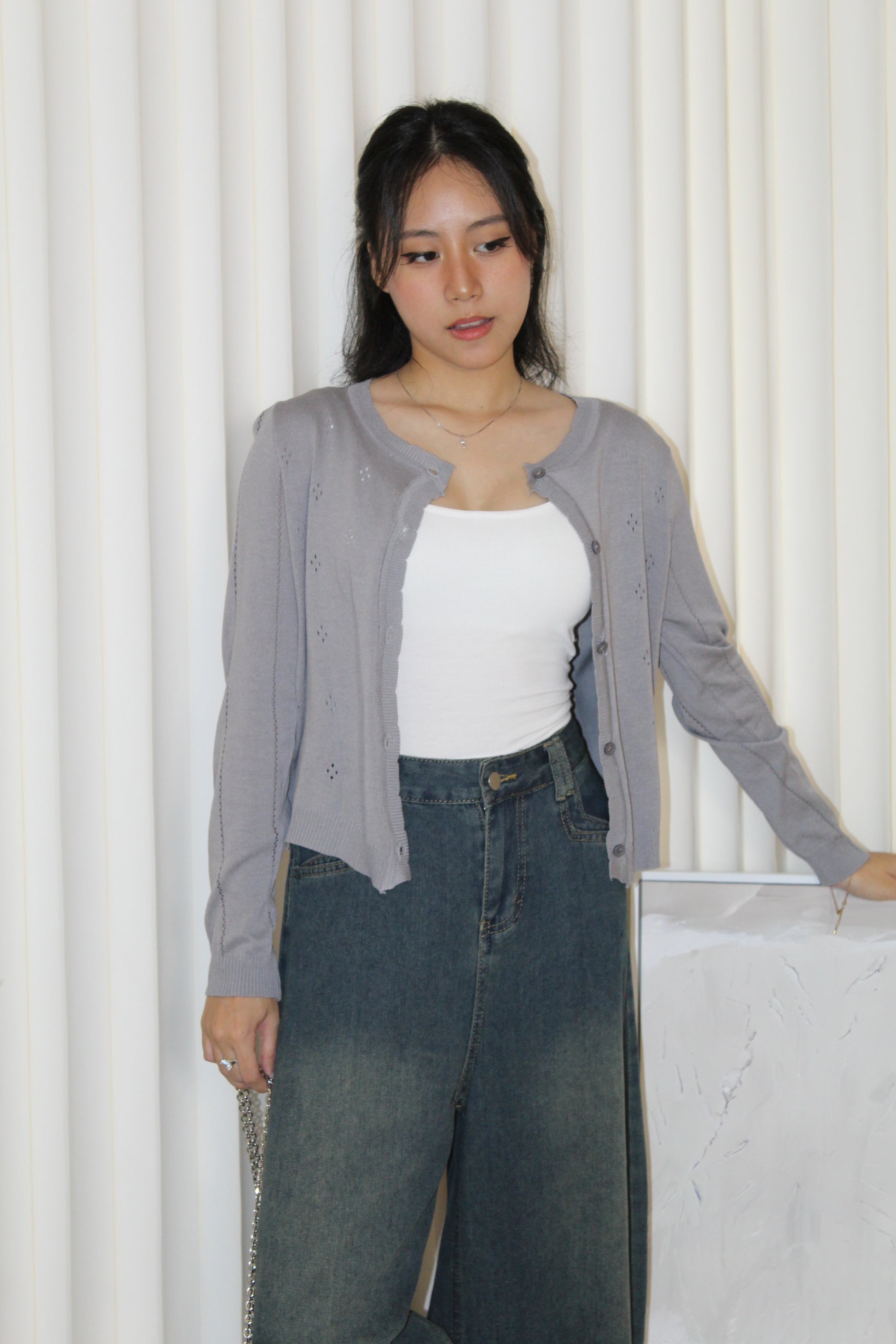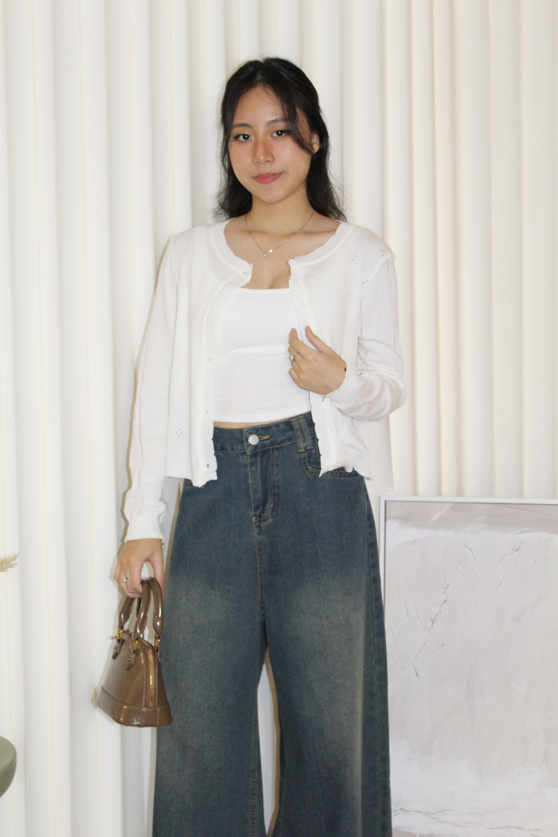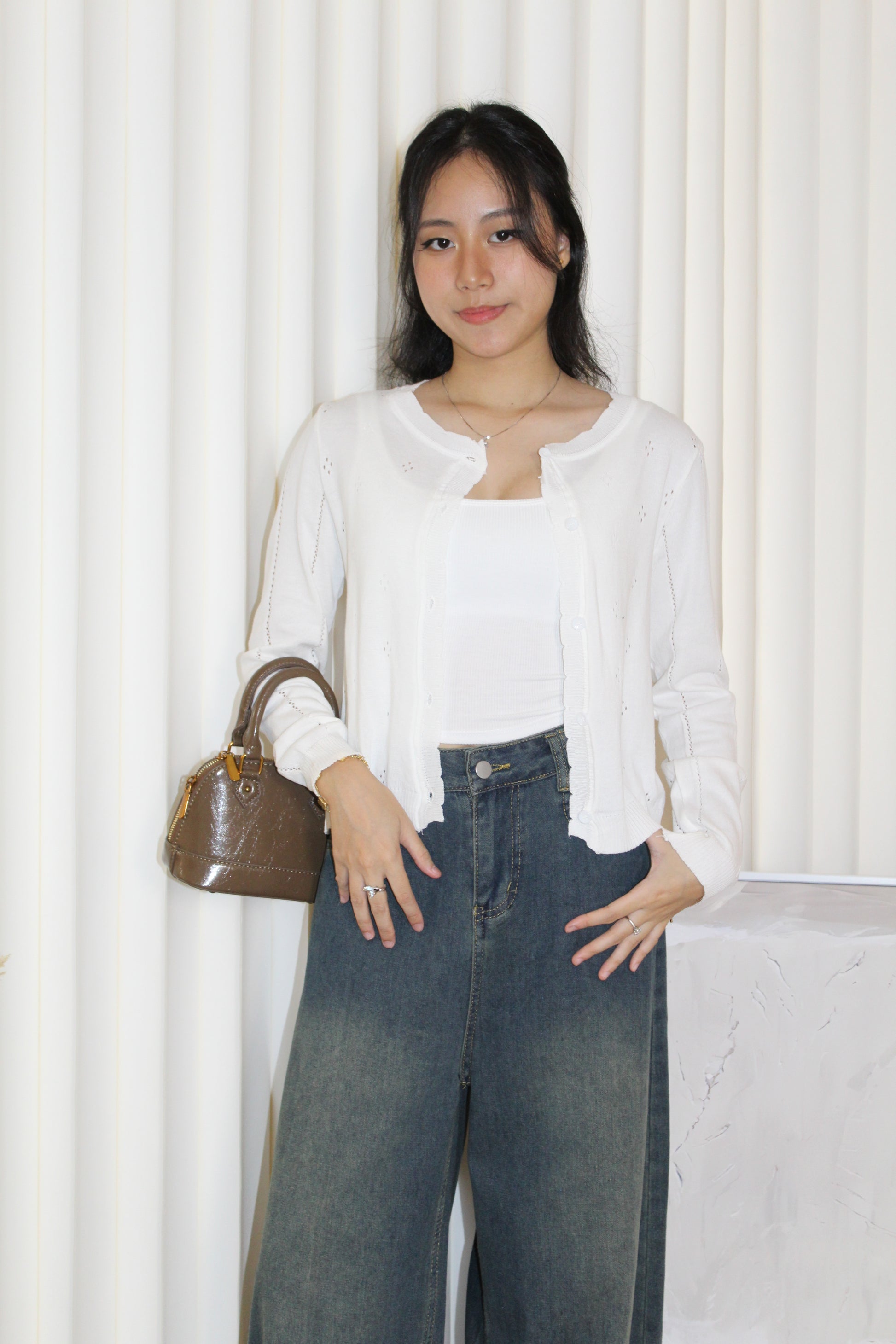 Jadira Knit Cardigan Top (White)