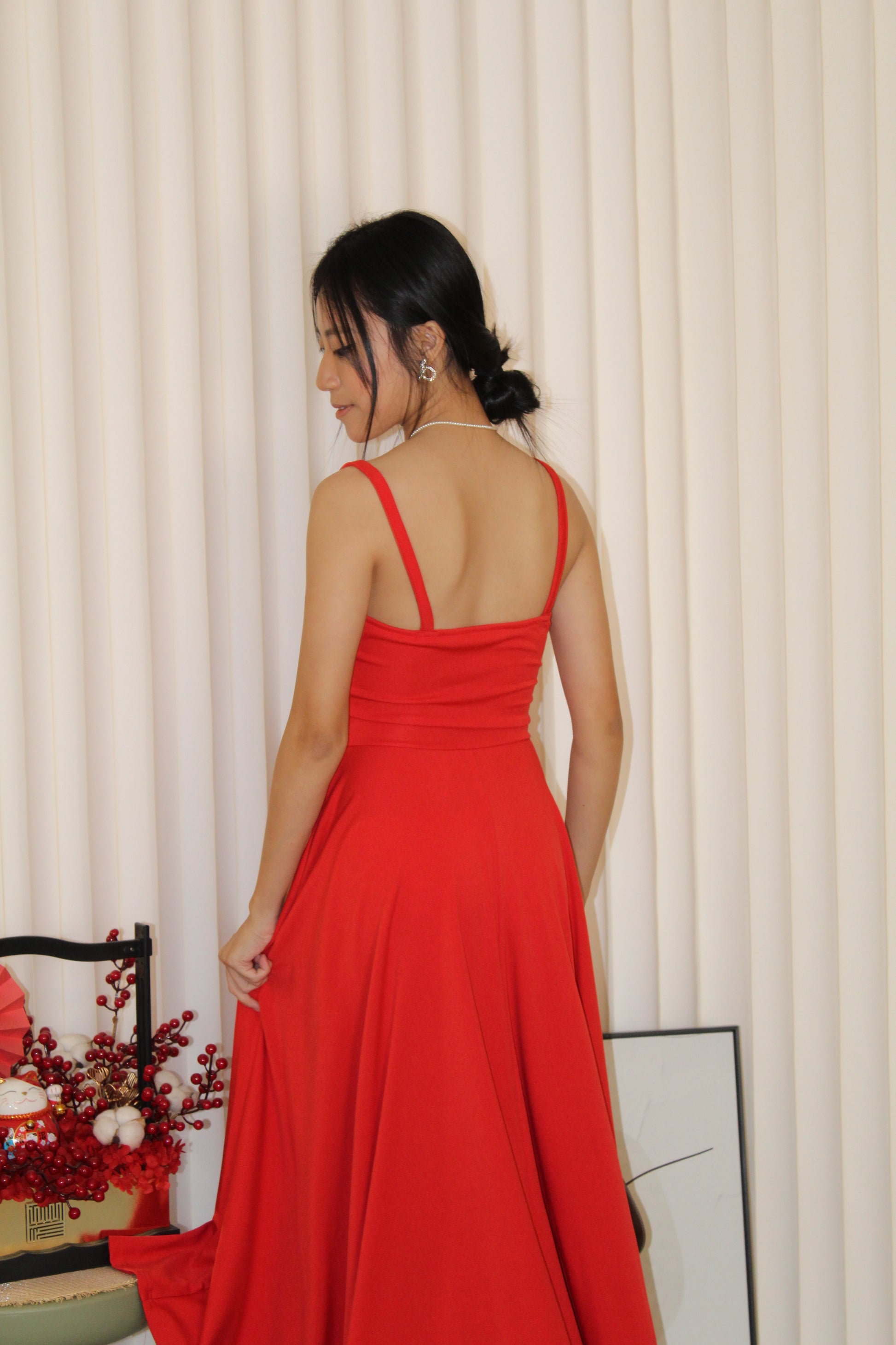 Liana Flare Slit Midi Dress (Red)