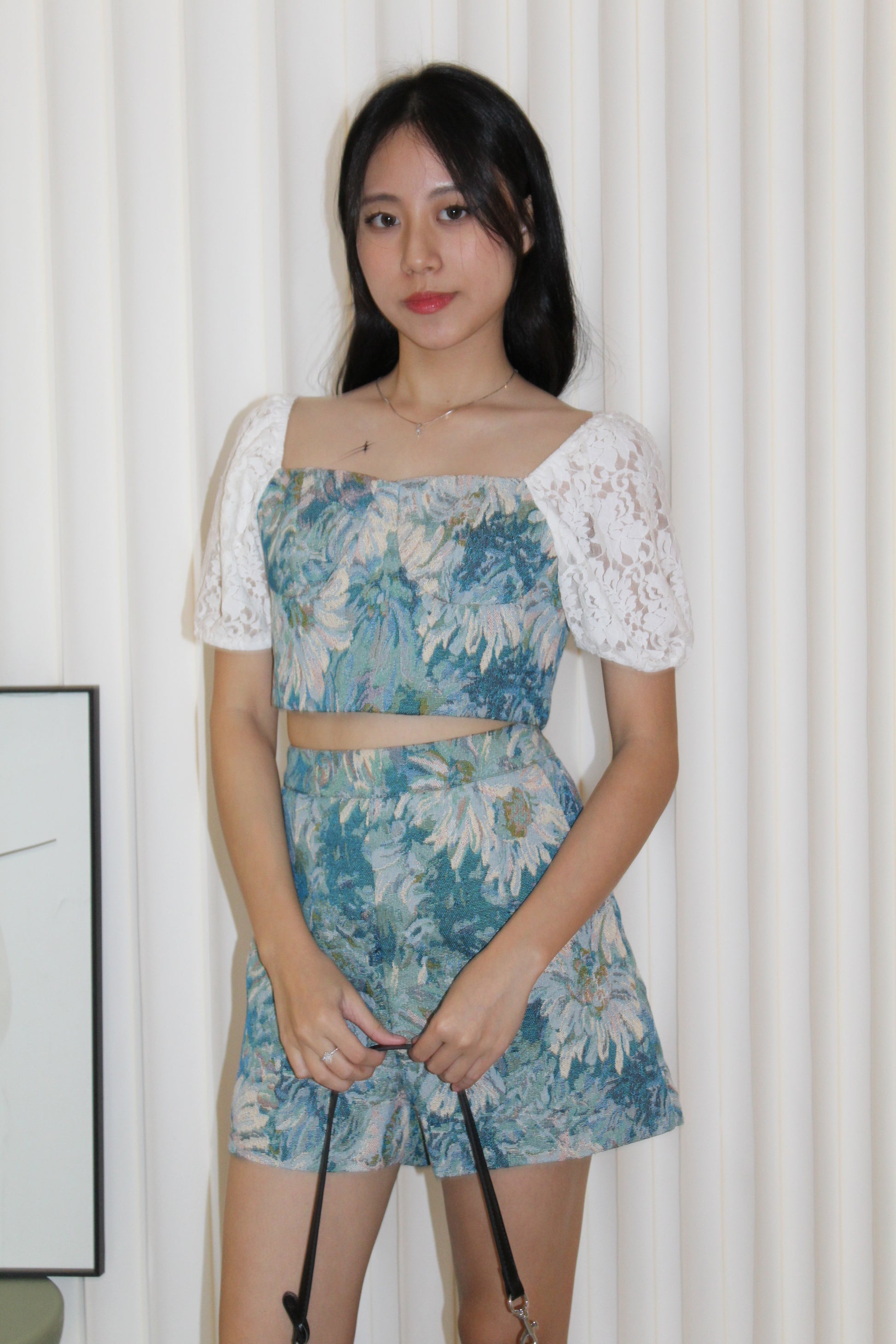 Luca Floral Two Piece Shorts Set (Dark Blue)
