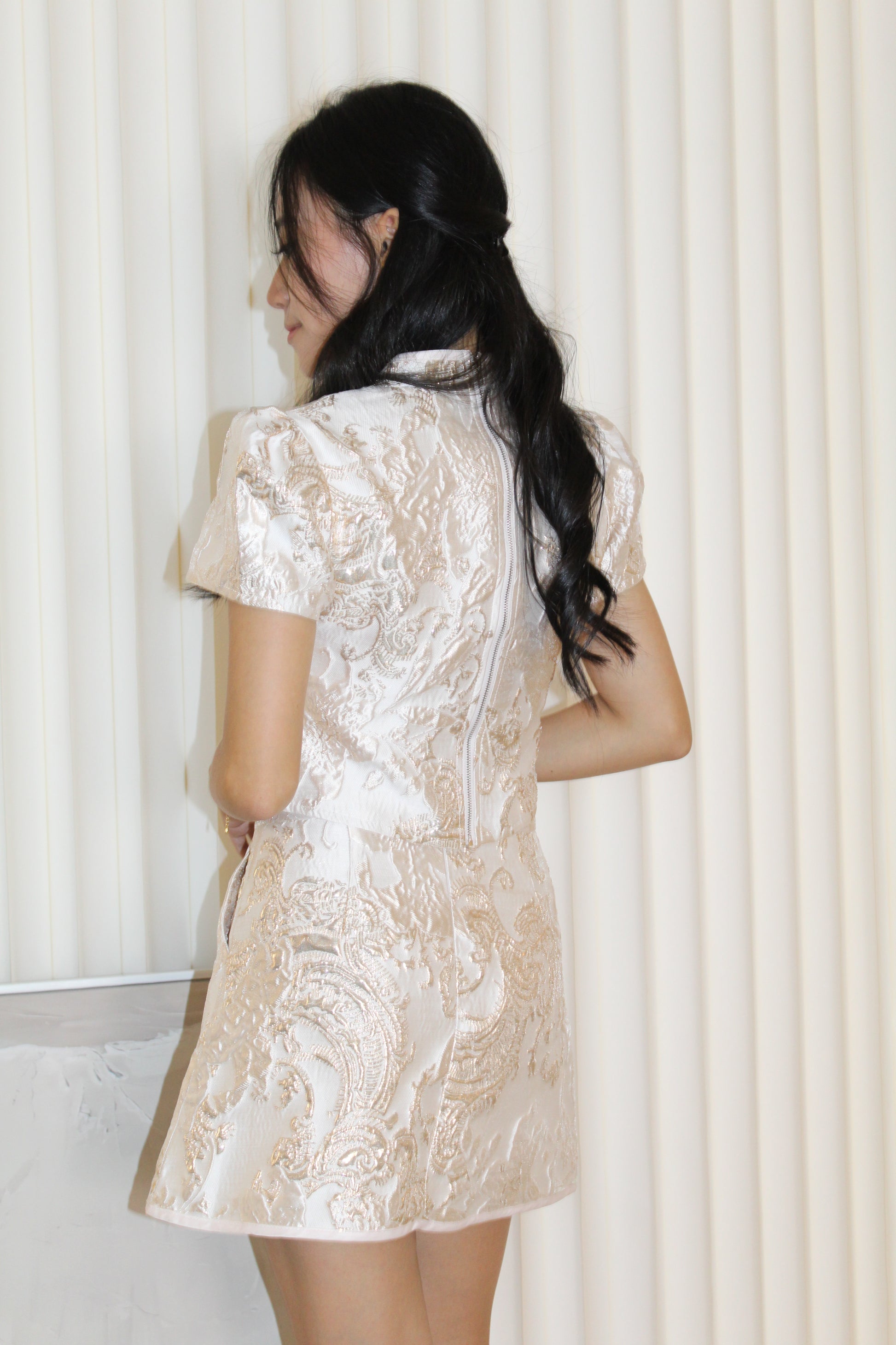 - Zip at back of top and bottom