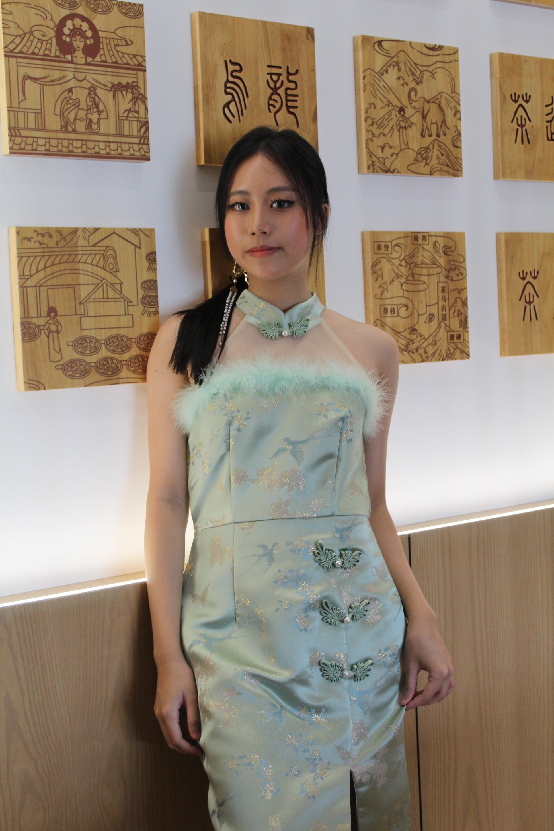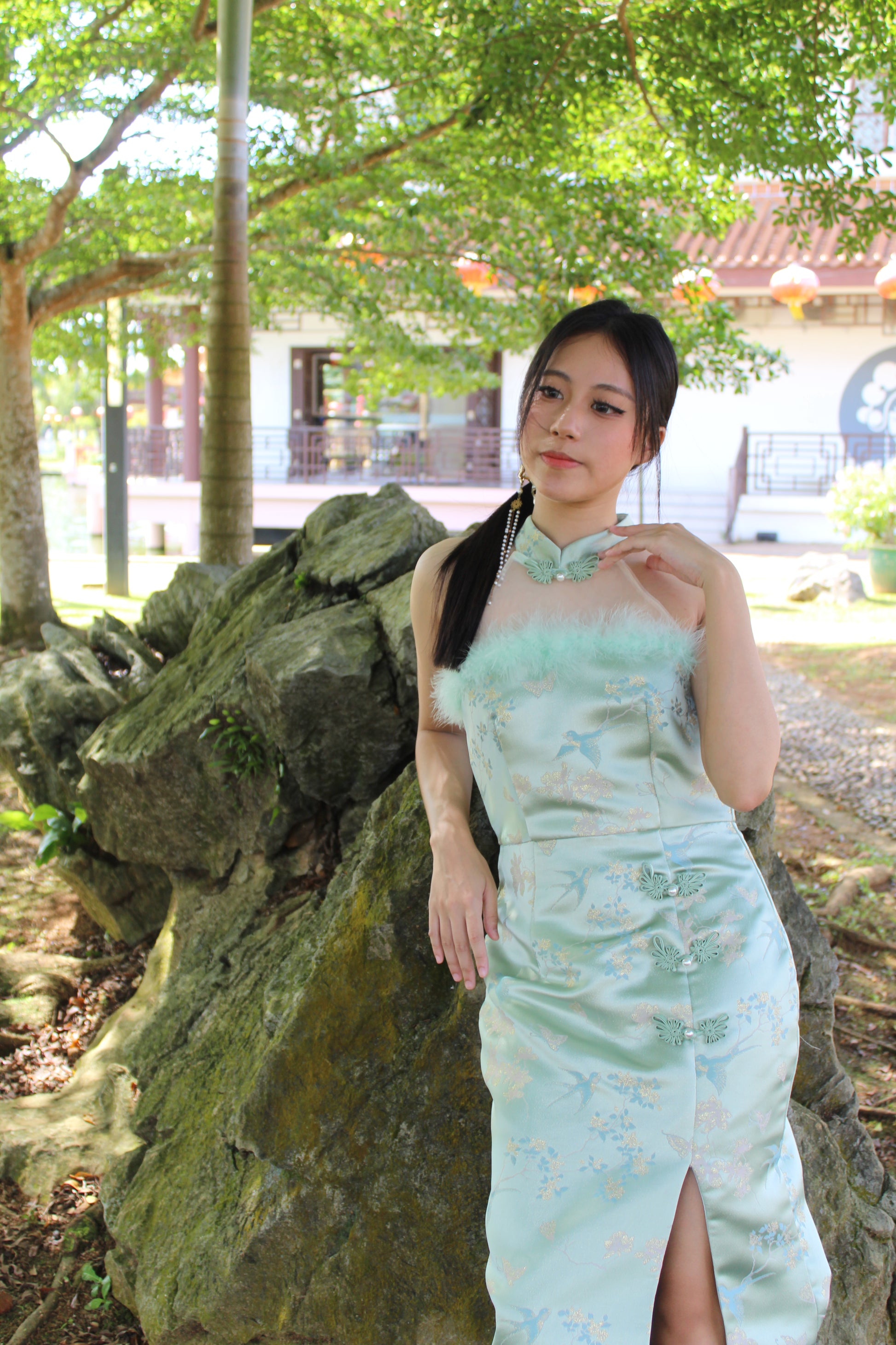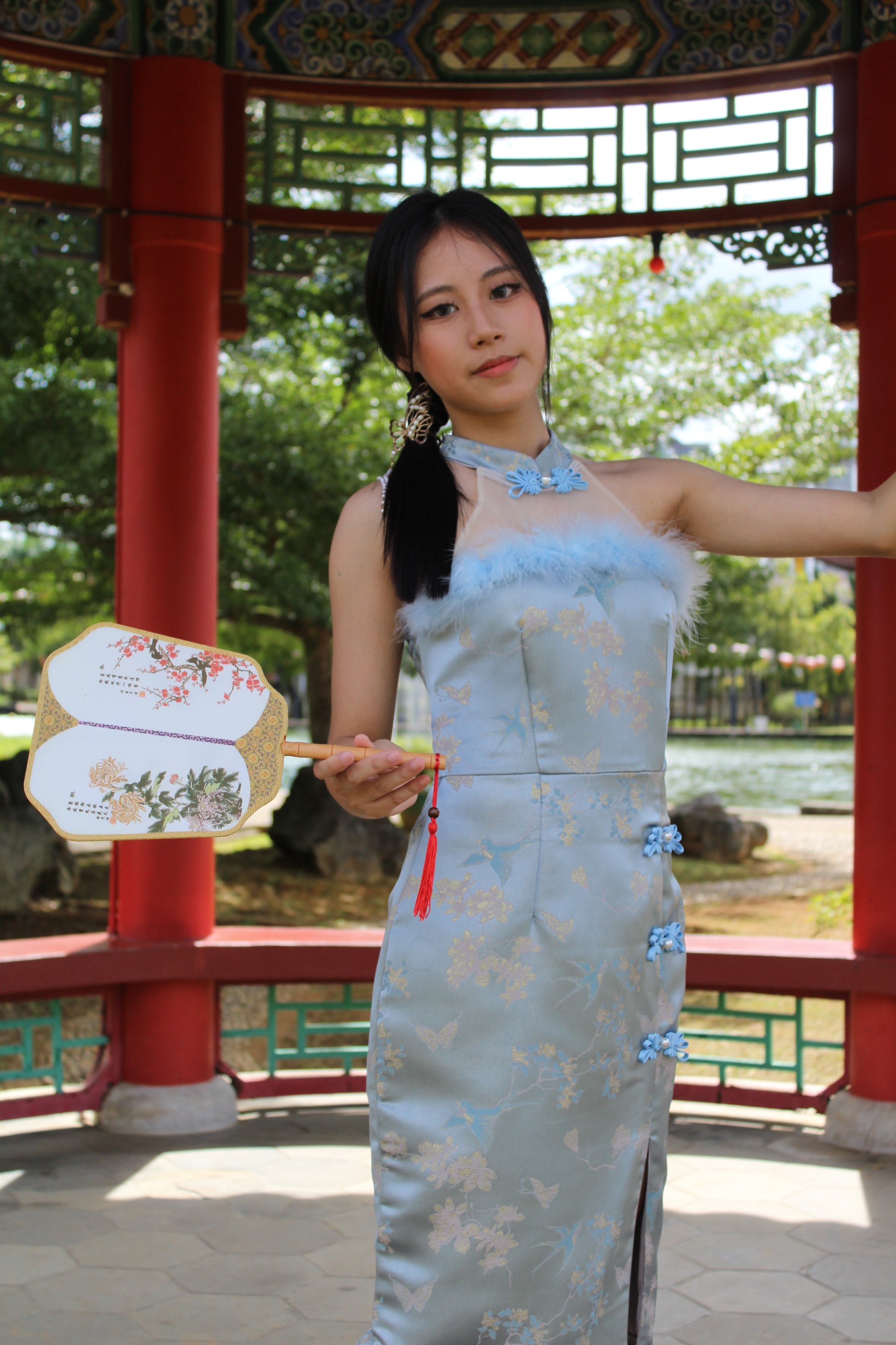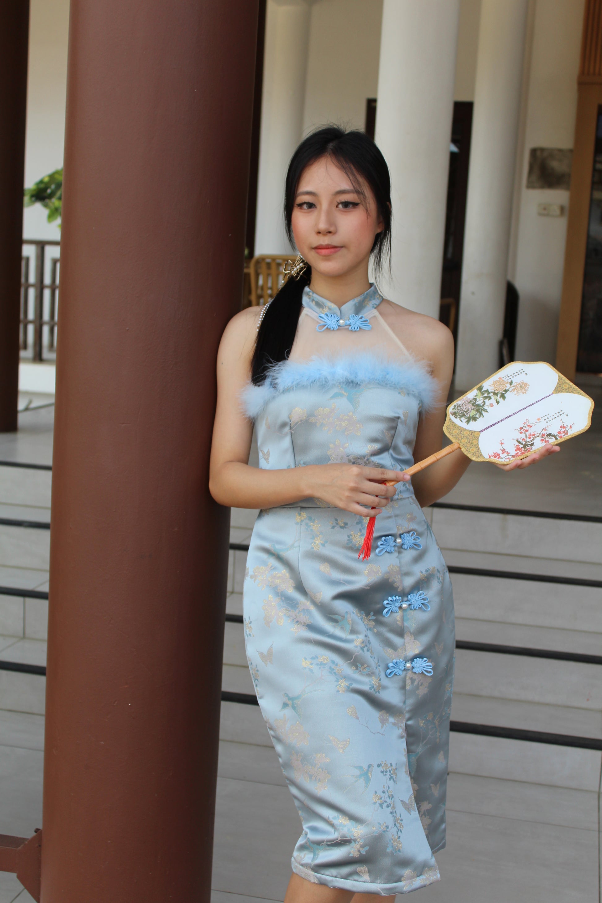 Qing Yu Mesh Midi Cheongsam Dress Premium (Blue)