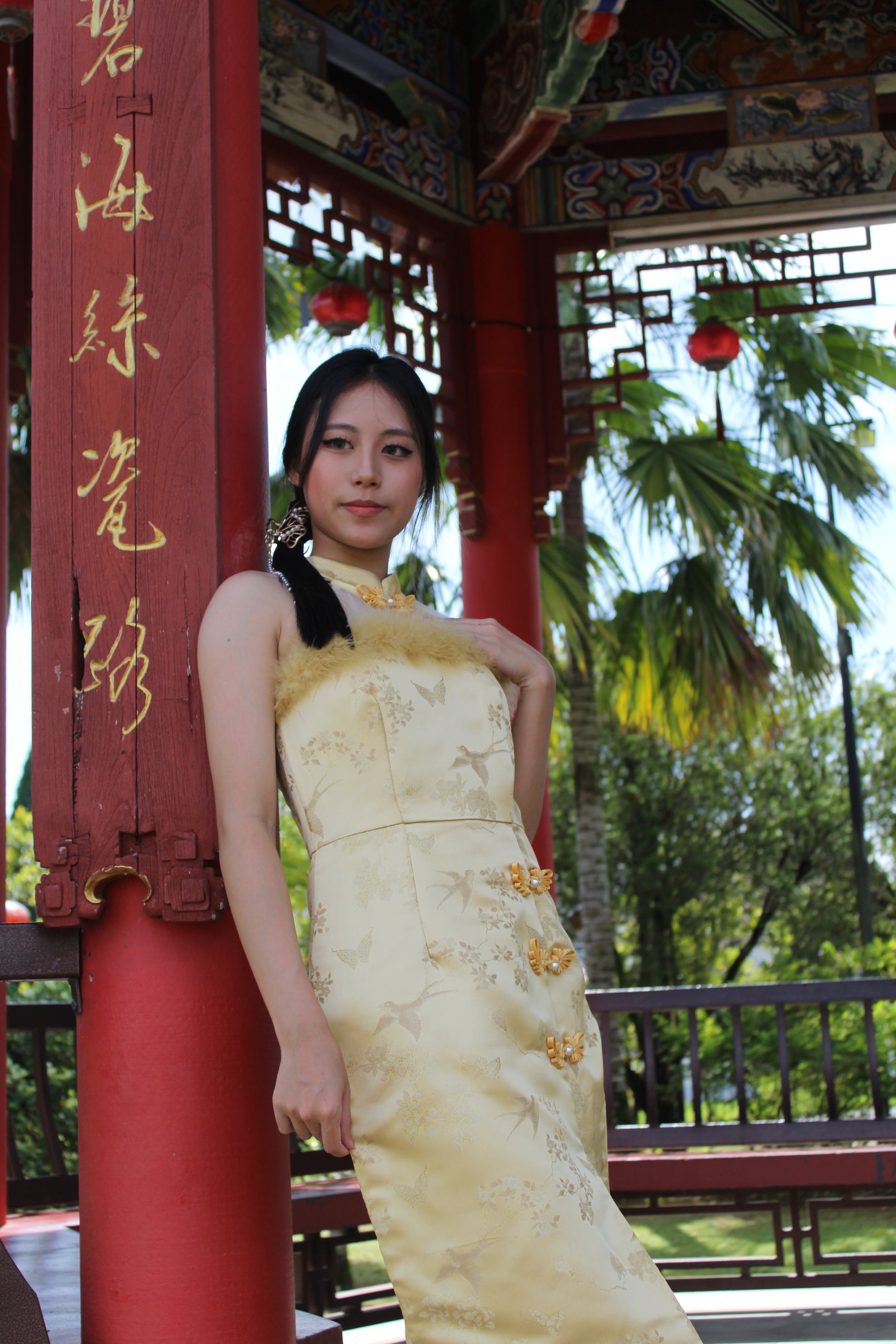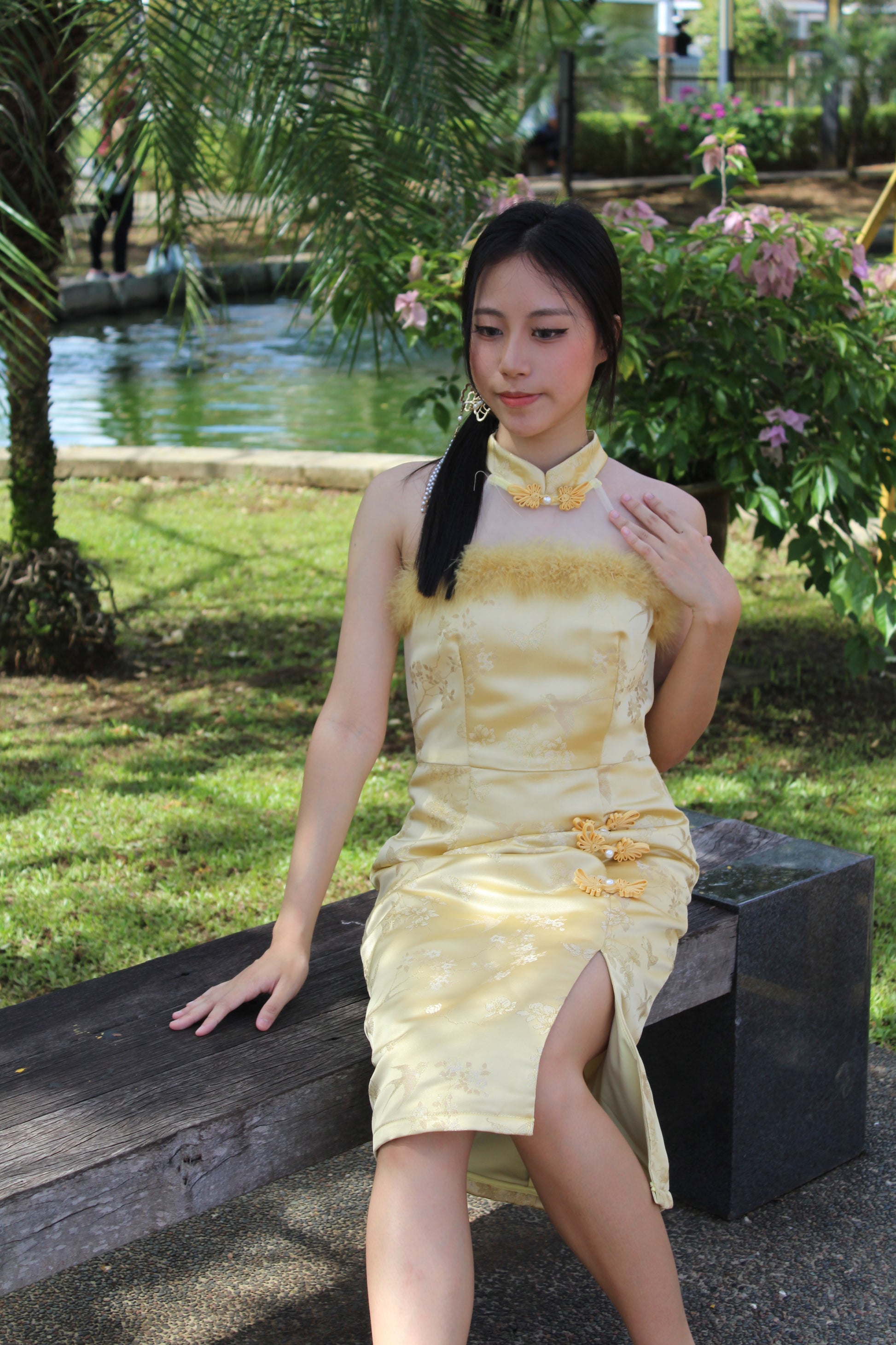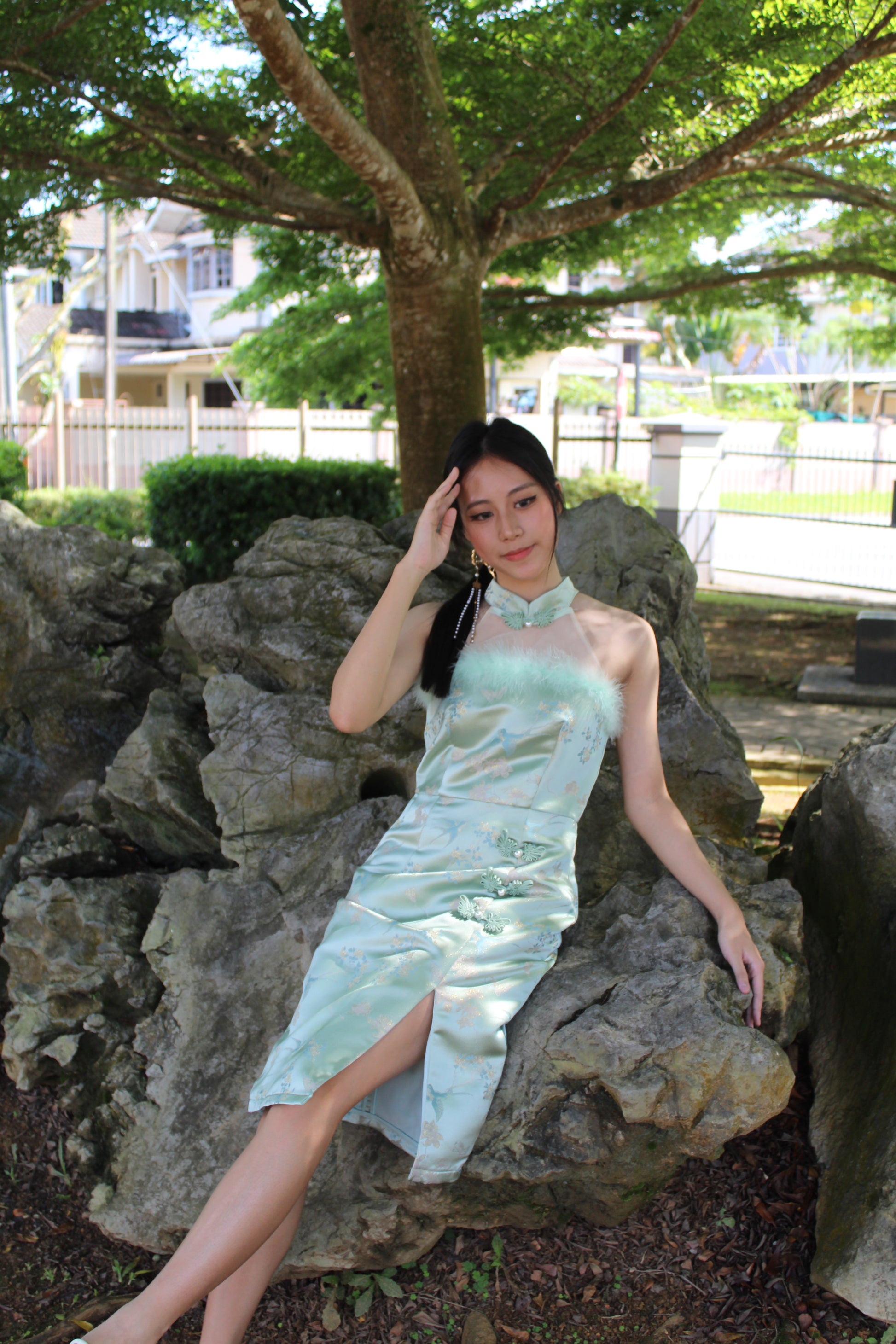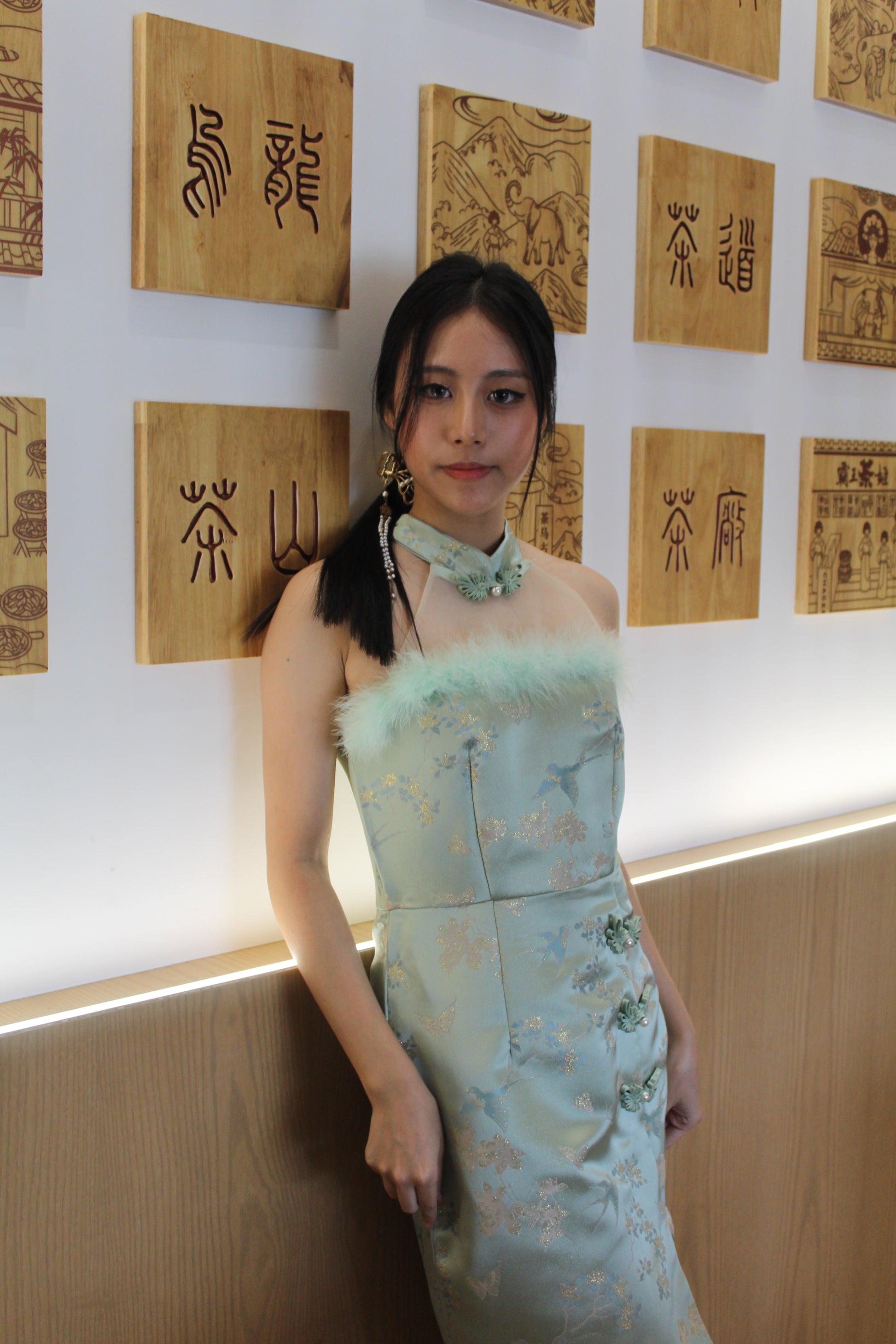 Qing Yu Mesh Midi Cheongsam Dress Premium (Blue)