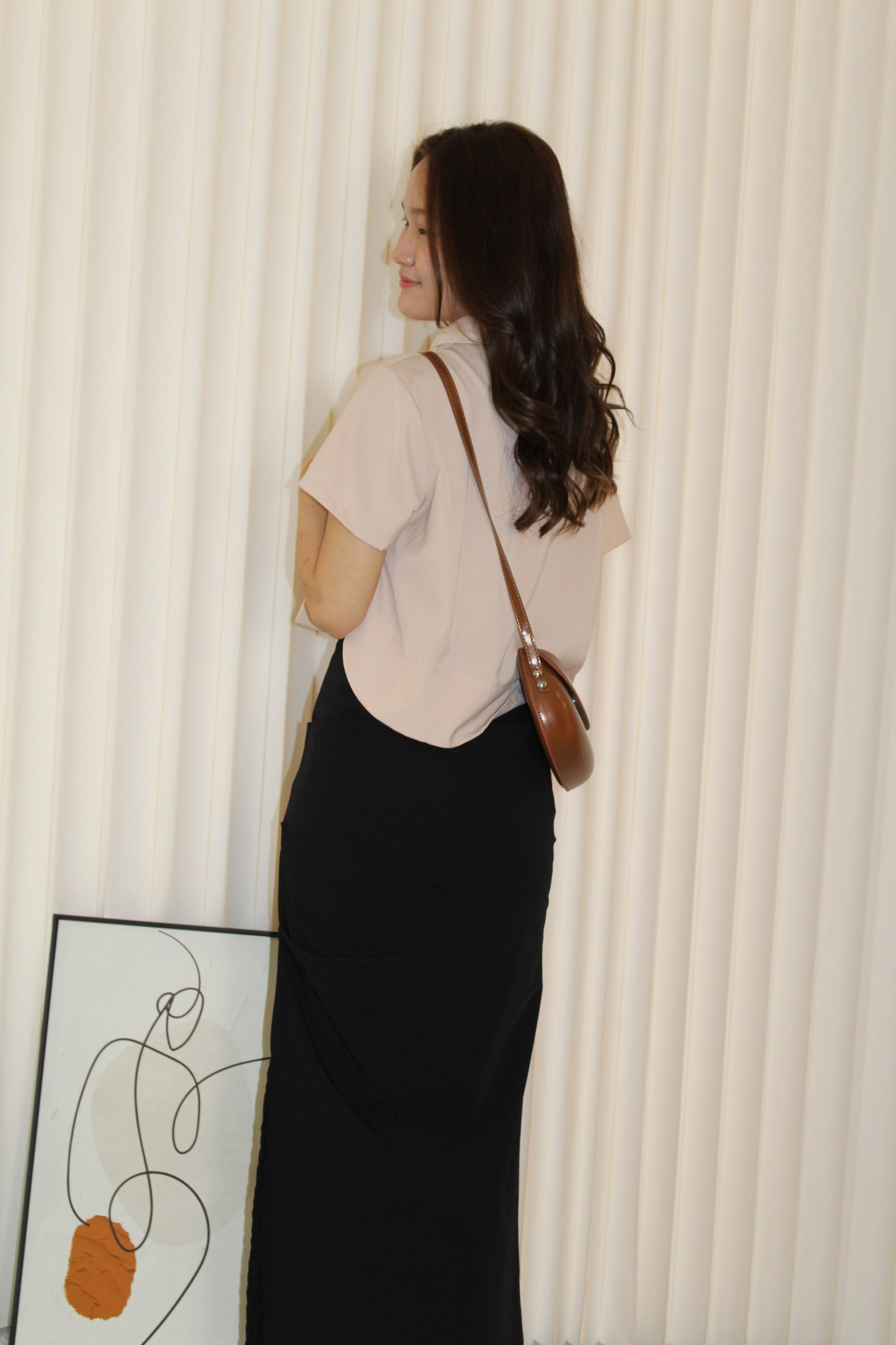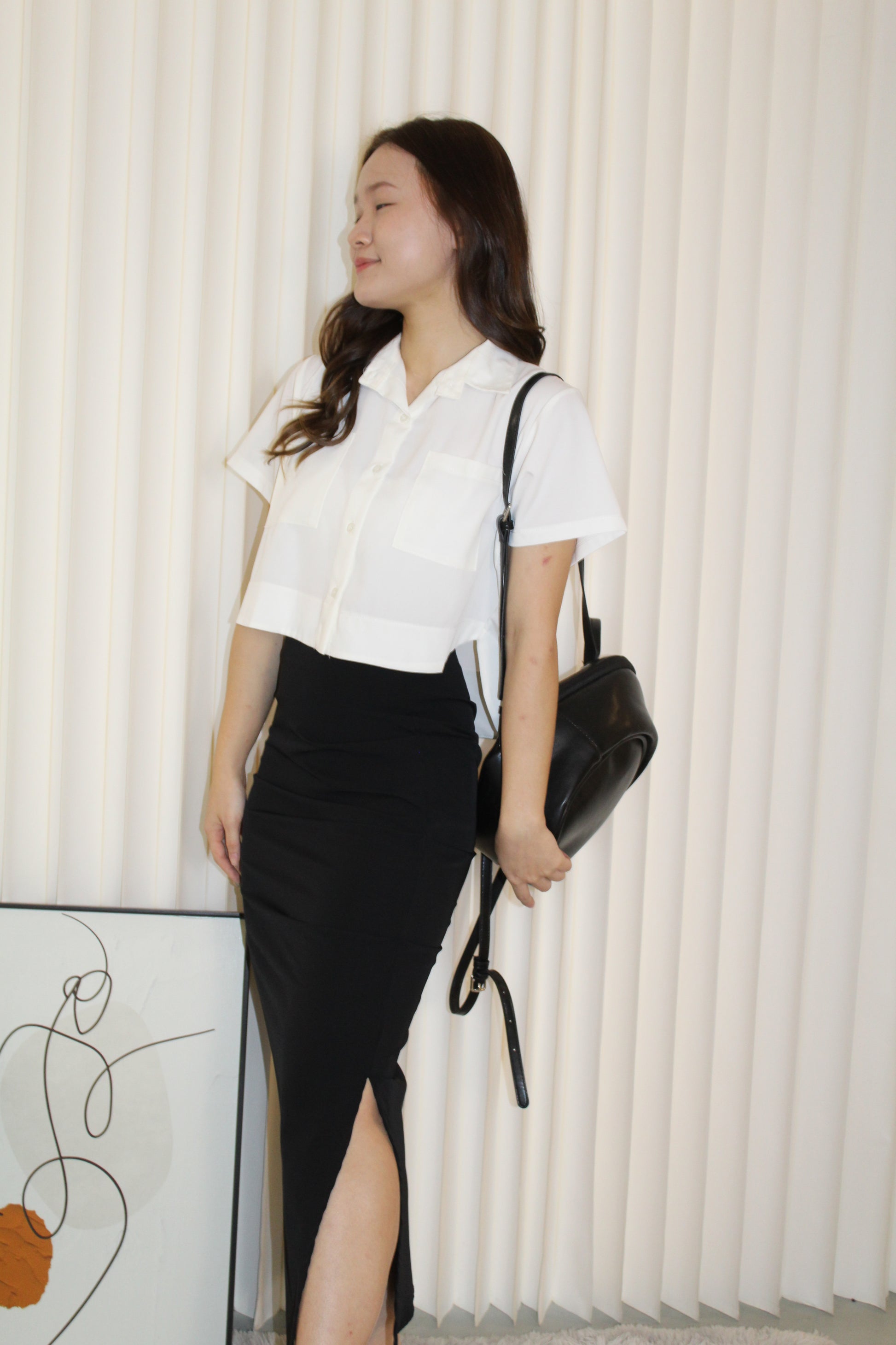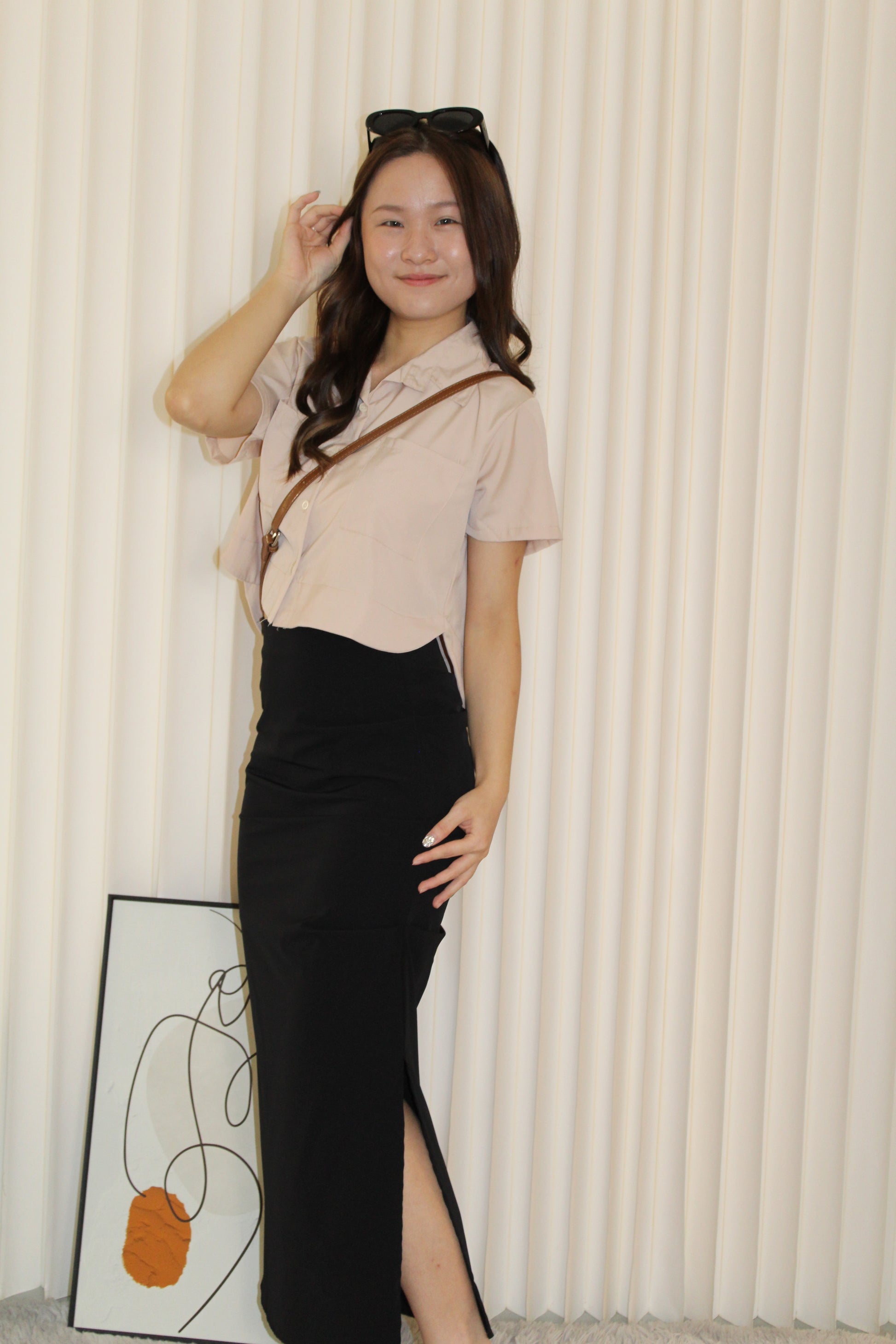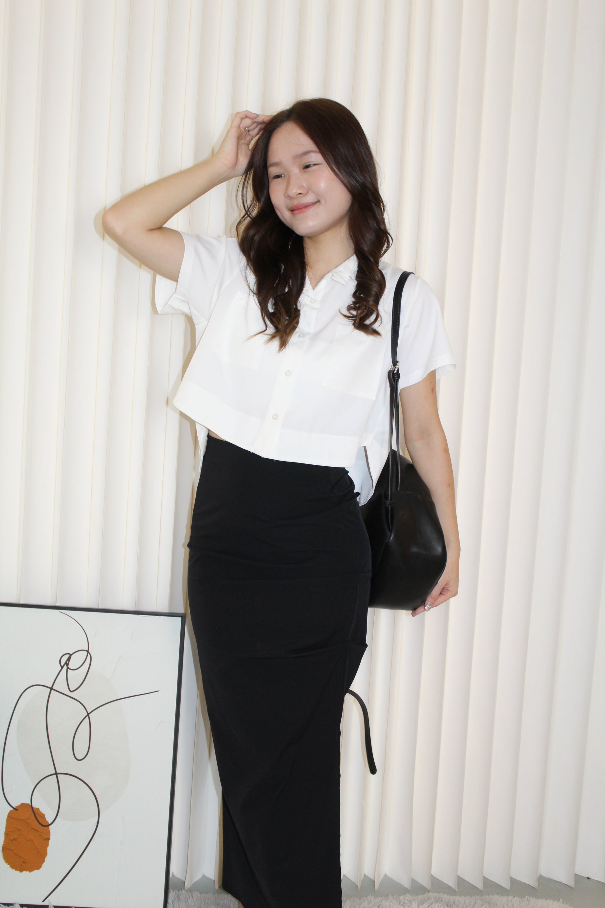 Rebecca Ruched Slit Maxi Skirt (Black)