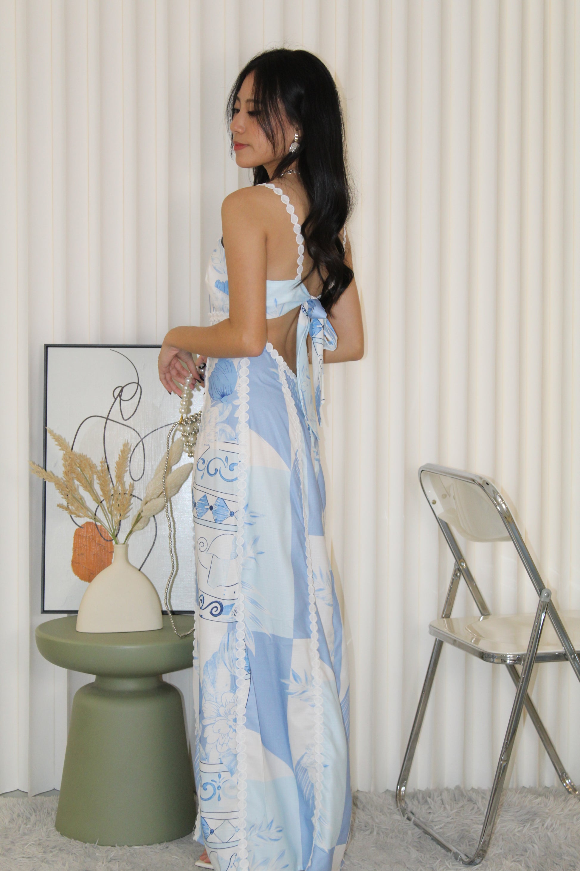 Riane Printed Bare Back Maxi Dress (Blue)