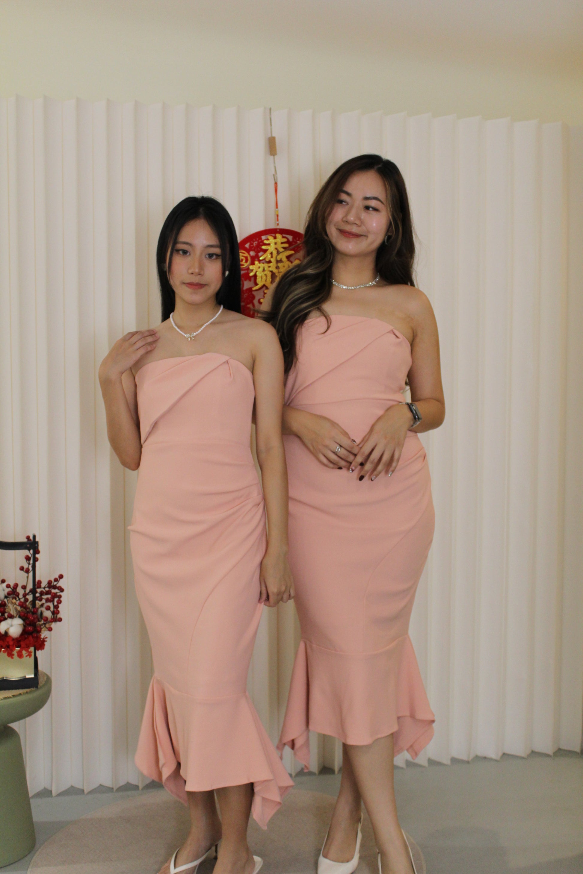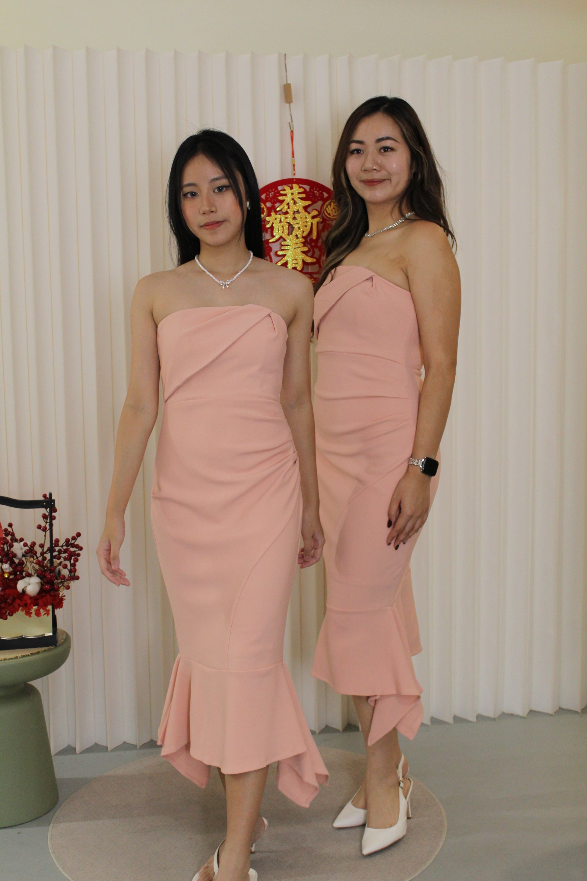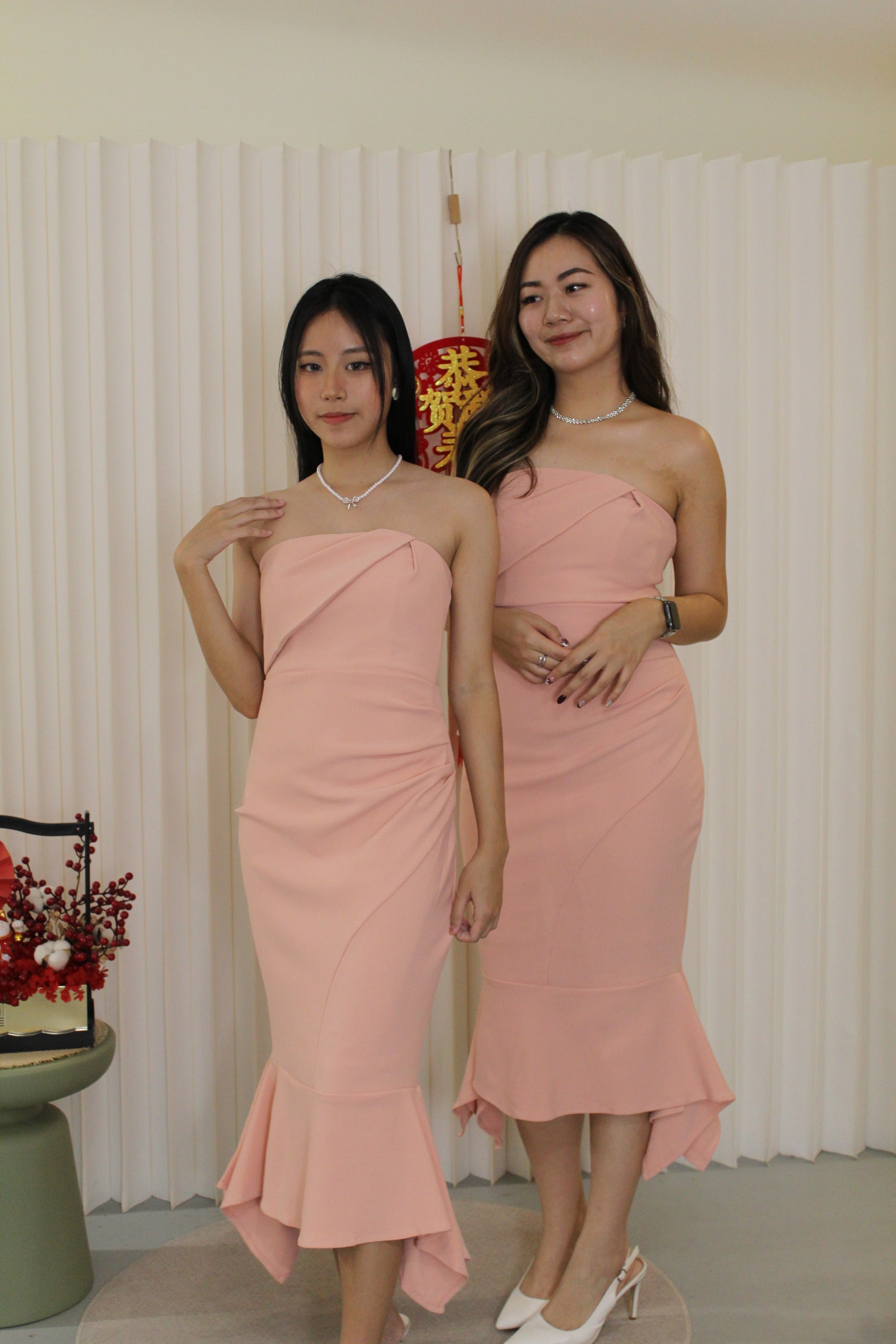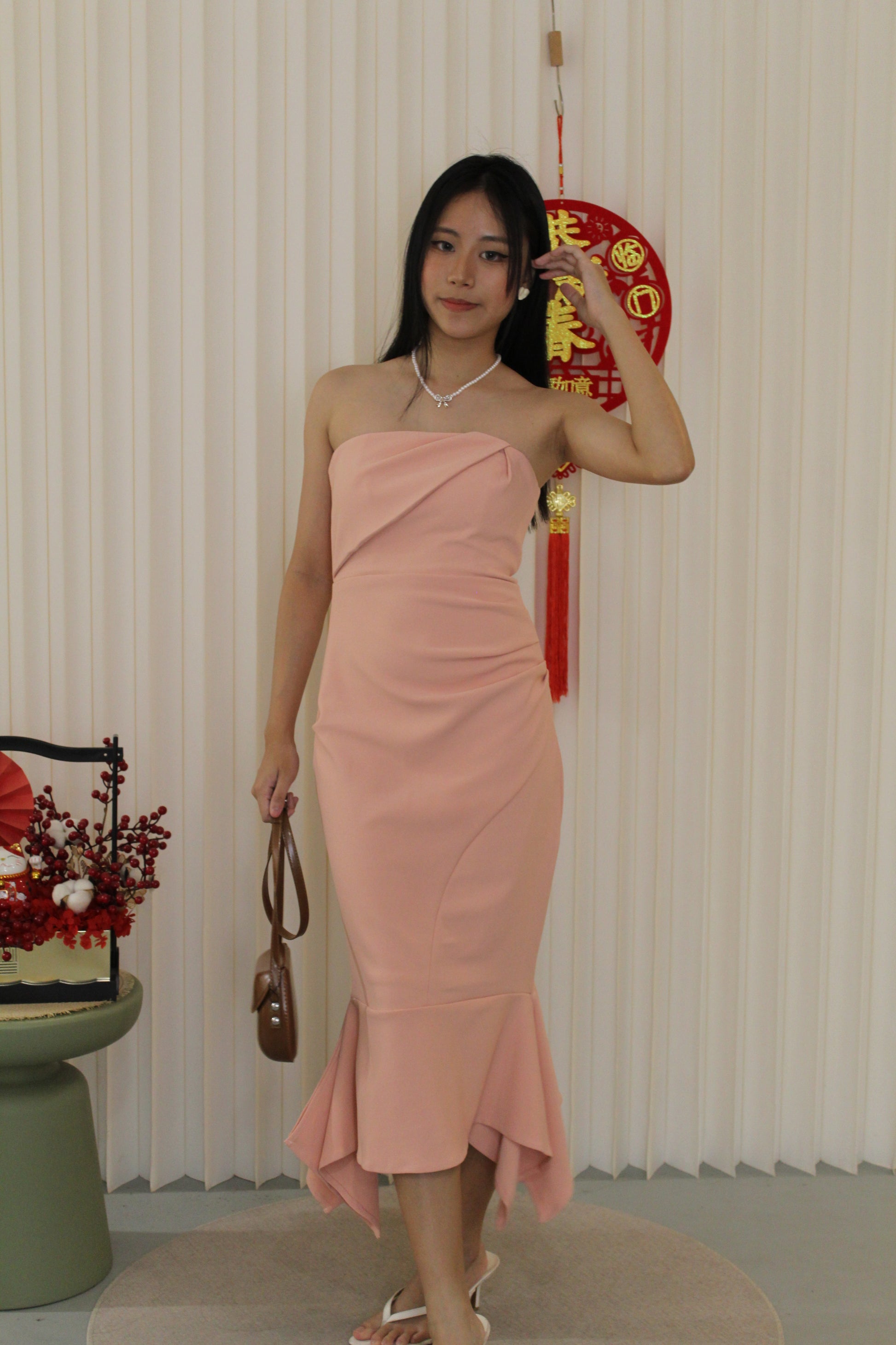 Mindy Fish Tail Midi Tube Dress Premium (Pink)