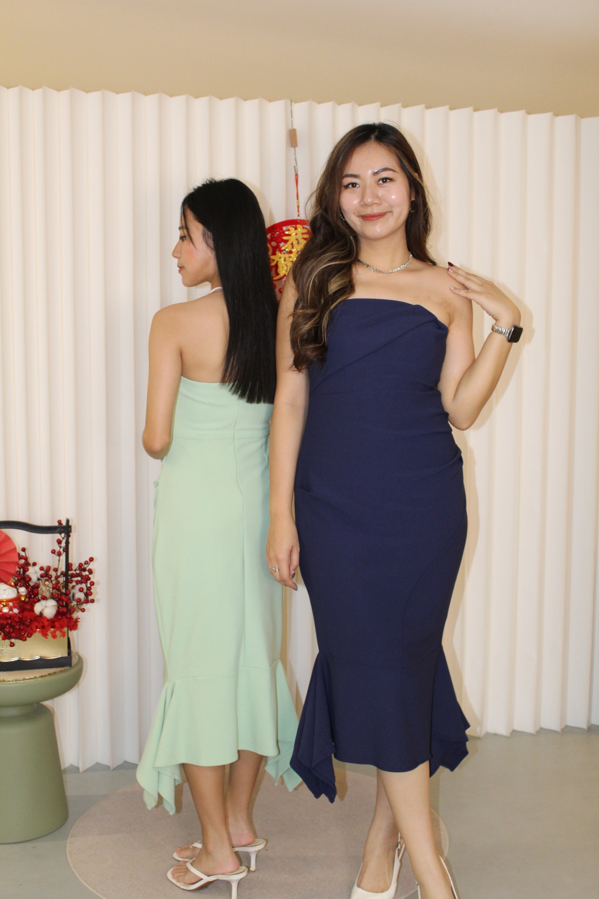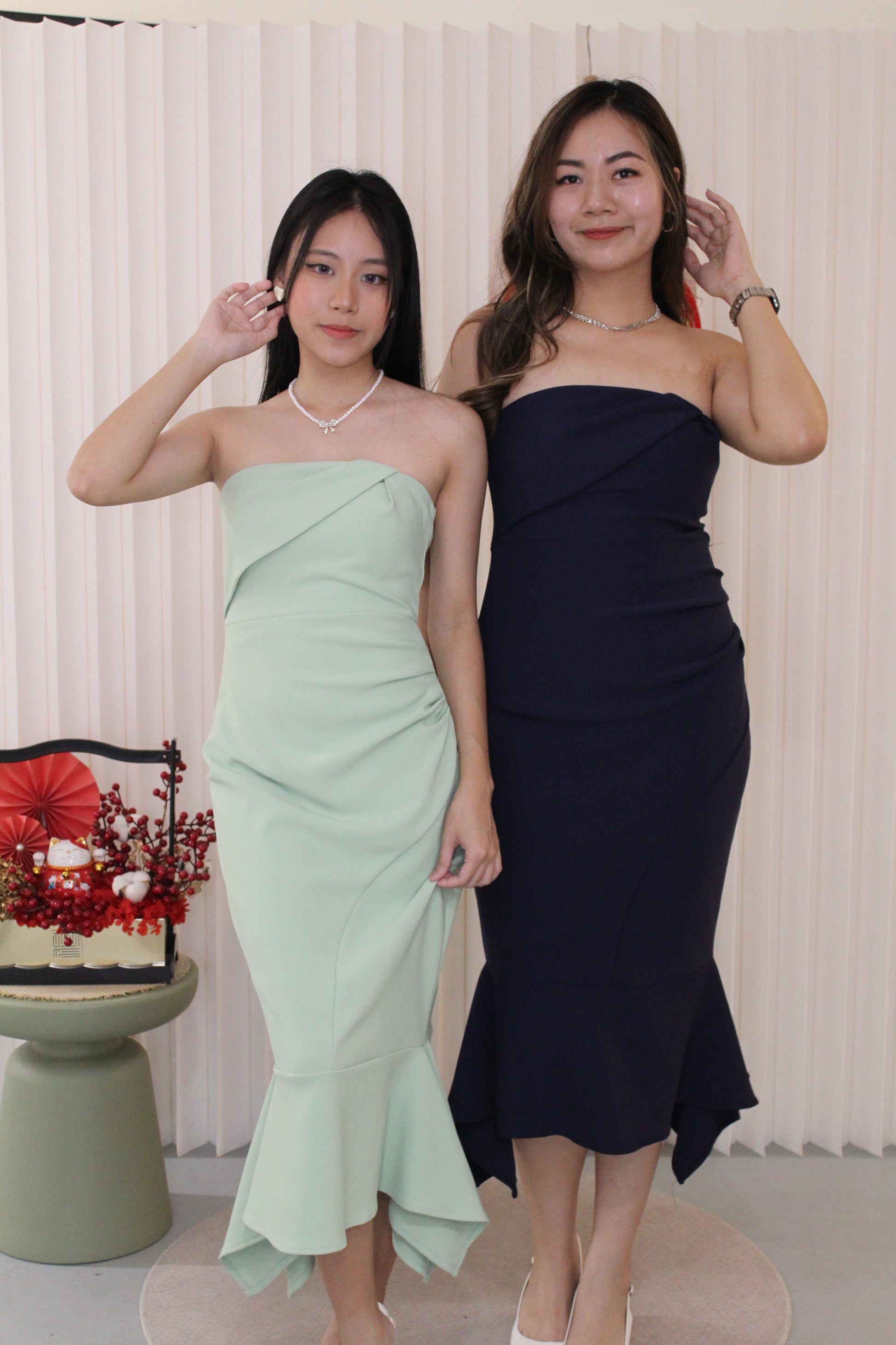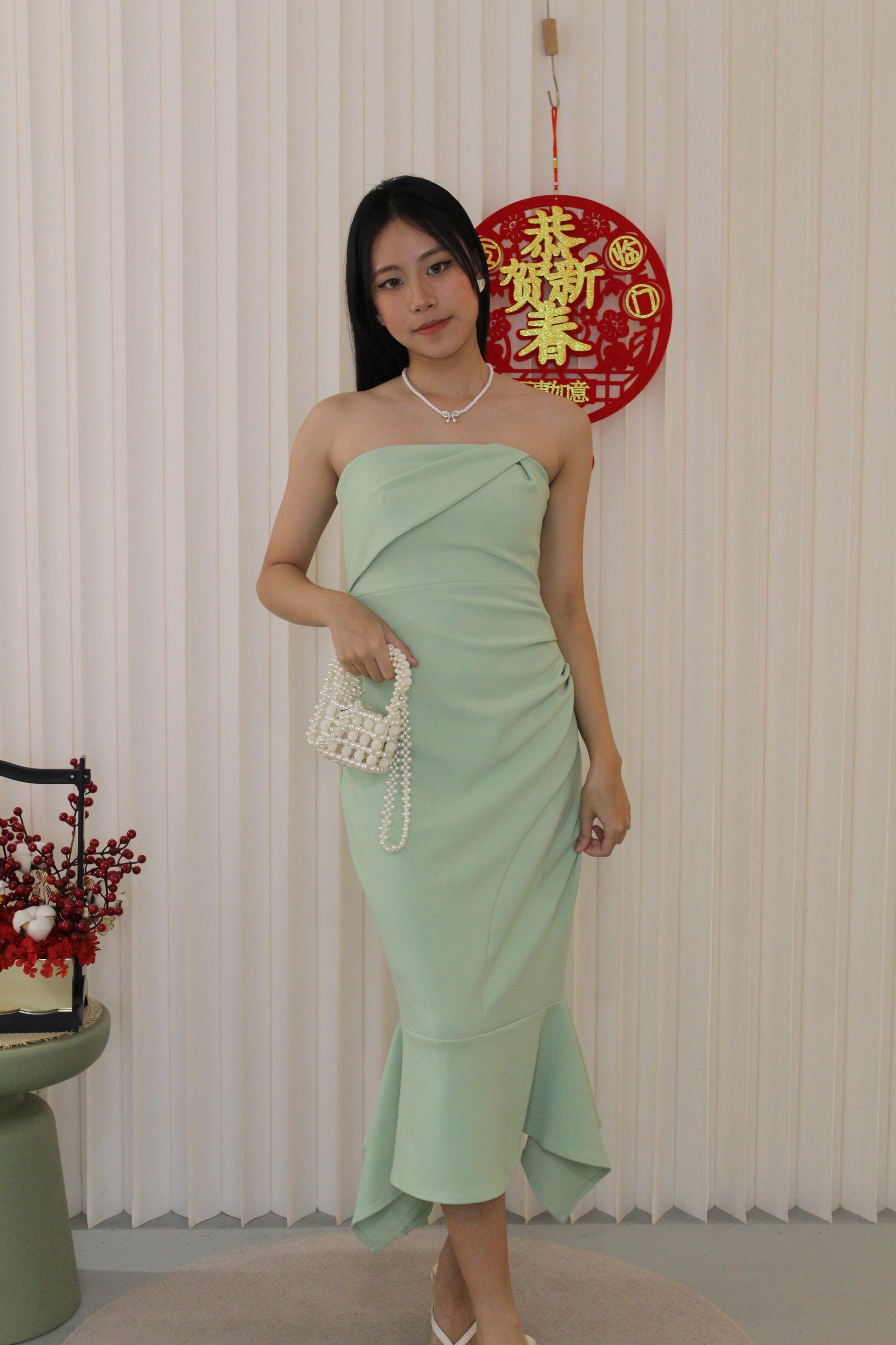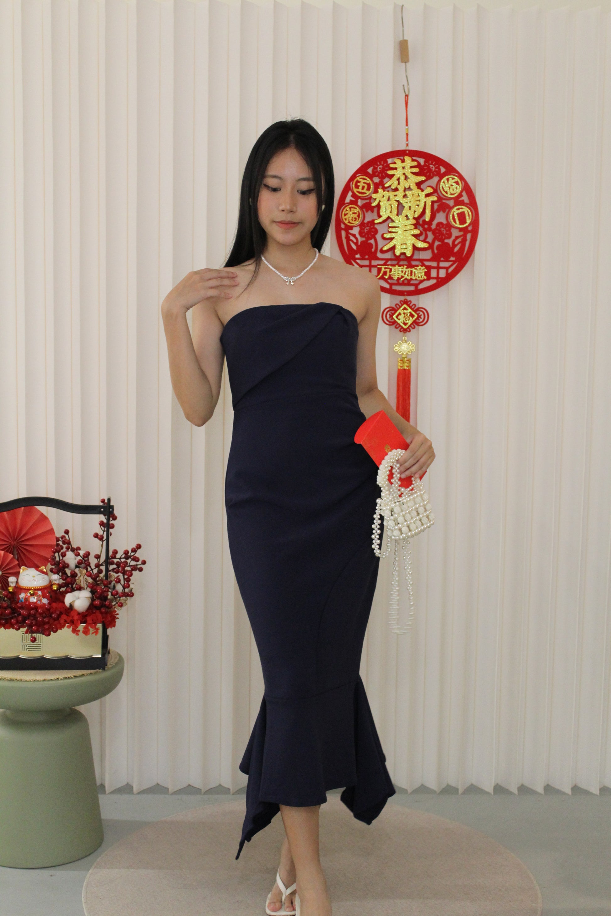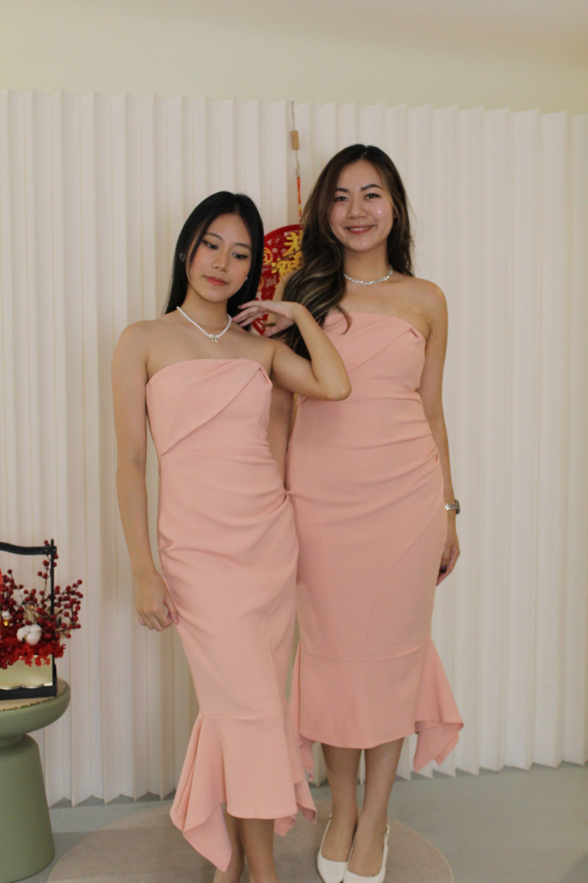 Mindy Fish Tail Midi Tube Dress Premium (Pink)